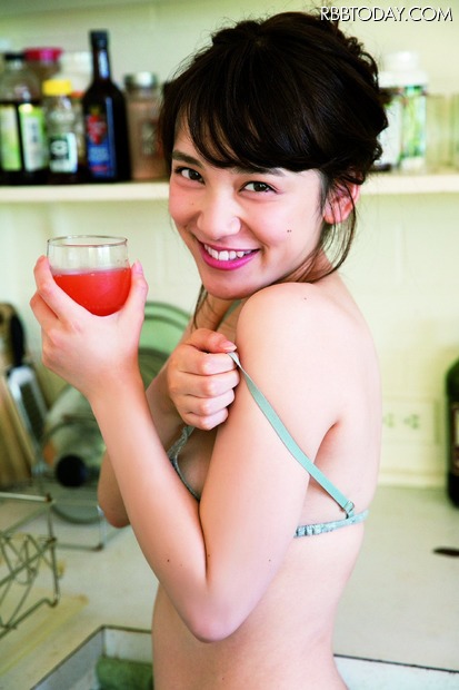 都丸紗也華さんは写真集にて手ぶら姿を披露!胸元を手で押さえることで形を変えたシルエットがとてもセクシーです。胸の柔らかさがよく伝わるお写真です。