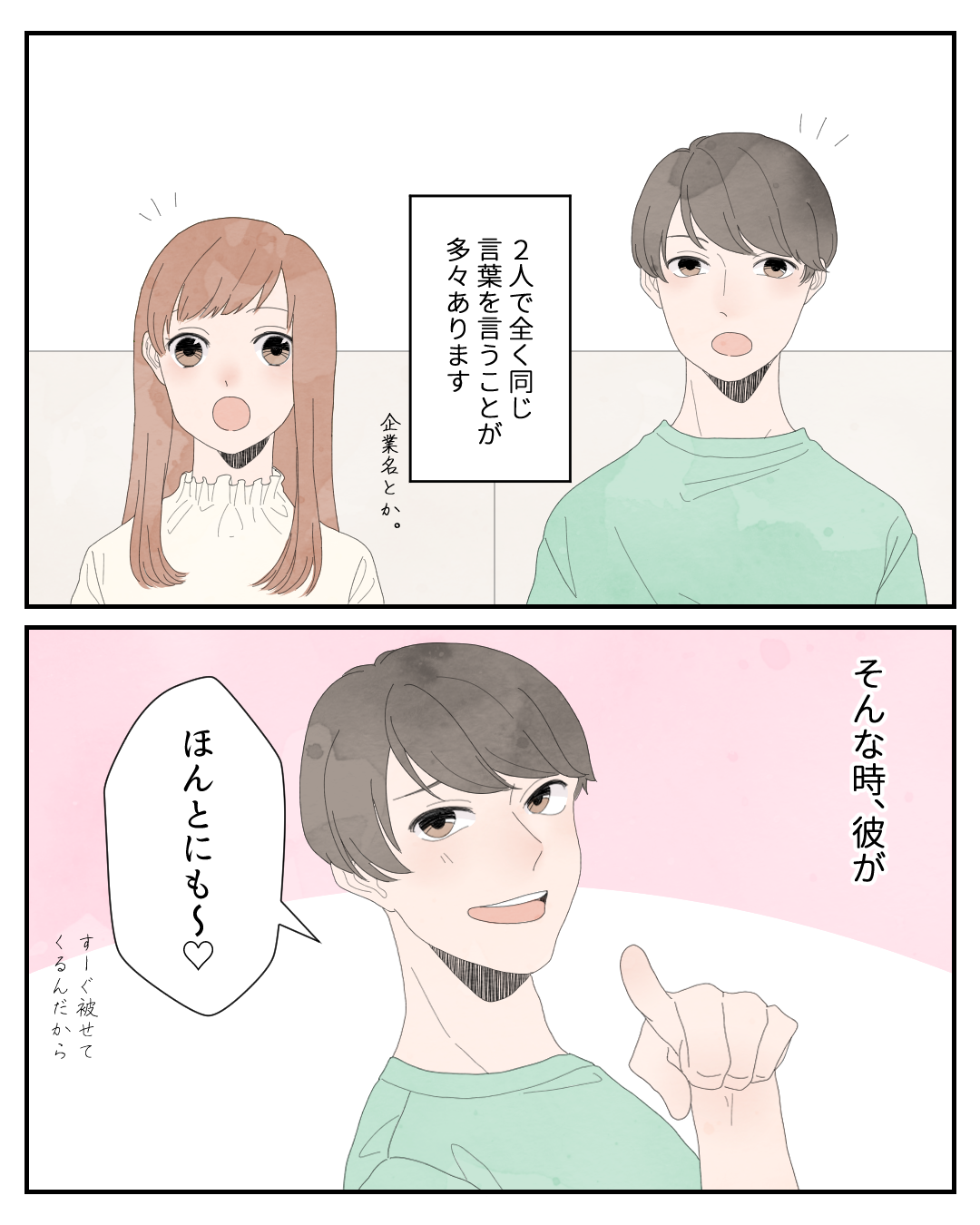 やっぱり気が合うなと思う瞬間【Lovely漫画】 オリジナル漫画 2022年3月29日 目次もっと胸キュンしたい人はこちらもチェック♡ 幸せを感じた話 | Lovely[ラブリー] ©zuki_haruki/エピソード:まりも きゅんとした話 | Lovely[ラブリー] ©zuki_haruki/エピソード:miiii 胸キュンアニメランキングTOP45!おすすめ恋愛アニメはこれ! | Lovely[ラブリー] アニメでもコミックでも、胸キュンものはファンから絶大な人気を得ていますよね。ハラハラドキドキさせられて、主人公に肩入れしたりして、どっぷり浸かってしまいがちです。そこで、みなさんから支持の高い胸キュンアニメランキングのご紹介です。 胸キュンエピソード17選!高校生・大人女子の恋愛トーク♡【必見】 | Lovely[ラブリー] 恋愛には胸キュンエピソードがたくさんありますよね。恋愛中の人もそうでない人も、胸キュンエピソードをたくさん聞いて恋愛力を高めましょう!ここでは高校生の胸キュンから大人の胸キュンまで、心をキュンキュン、ドキドキさせる恋愛エピソードを紹介します。恋愛心理の話も交えながら、素敵な恋愛トークをしませんか? ライター Lovely編集部 編集部レポや最新情報など皆さんの「知りたい」をお届け!よろしくお願いします♡ Related article / 関連記事 オリジナル漫画 メンヘラ彼氏にサヨナラ【Lovely漫画】 ©みんみ 2022年3月29日 オリジナル漫画 年下イケメン彼氏に翻弄されるオンナの毎日#3【Lovely漫画】 ©みんみ 2022年3月29日 オリジナル漫画 2人暮らしのゆる家事日記~気まぐれ旦那の献立作りの巻き~後編【Lovely漫画】 ©みんみ 2022年3月29日 オリジナル漫画 年下イケメン彼氏に翻弄されるオンナの毎日#1【Lovely漫画】 ©みんみ「初めての○○の話 前編」 2022年3月29日 オリジナル漫画 年下イケメン彼氏に翻弄されるオンナの毎日#2【Lovely漫画】 ©みんみ「初めての○○の話 後編」 2022年3月29日 オリジナル漫画 よかったらシェアしてね! URLをコピーしました! URLをコピーしました! 【夢占い】彼女に浮気された夢の意味13選|もしかして予知夢?心理状態も解説 | plush 恋愛相談はどこで?相談所・掲示板・アプリでする?男友達にする?
