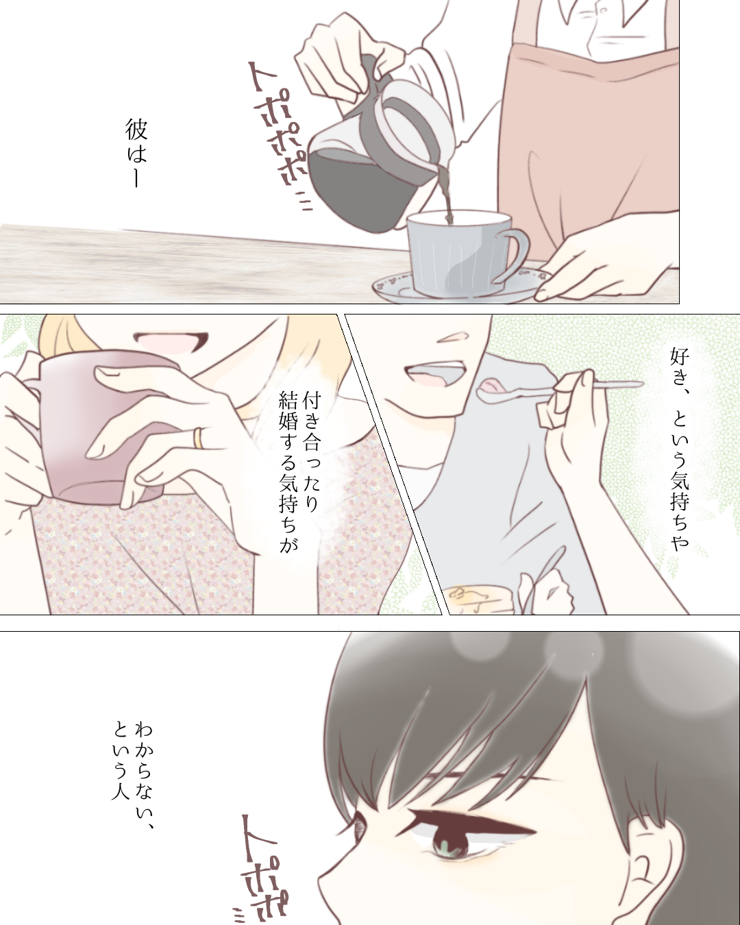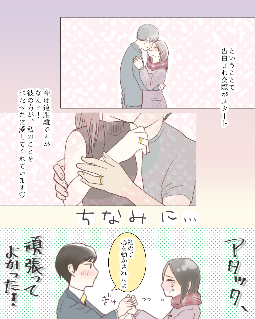 好きな人が出来たことが無い彼を好きにさせた話【Lovely漫画】 オリジナル漫画 2025年2月12日 しのだちかこさんの作品をもっと読む! しのだちかこさんの作品一覧【Lovely漫画】 しのだちかこさんの人気作をおまとめしています! 次はいつ会えるかな…♡遠距離恋愛特集! 夜の電話【Lovely漫画】 年上彼氏と中距離恋愛中の私。毎晩の電話が日課になっています。ところが、今日の電話は彼の返事が素っ気なくて…。©なつ/エピソード:めめ 同期との運命の出会い【Lovely漫画】 研修で一緒になった同期に一目惚れした私。特に進展もなく迎えた研修最終日、彼から食事に誘われて…。©マナミン/エピソード:ゆゆまる。 婚約ミサンガ【Lovely漫画】 彼が沖縄のおみやげをたくさん買ってきてくれた。その中にはミサンガも。すると彼が突然驚きの言葉を!?©しのだちかこ/エピソード:Mooorin おすすめの関連記事はこちら 遠距離恋愛から結婚したカップルの11の秘訣!女性がすべきことは? | Lovely[ラブリー] 仕事や進学で泣く泣く、遠距離恋愛をしていませんか? 難しいと言われる遠距離恋愛ですが、付き合っている以上は結婚したいですよね。今回は遠距離恋愛から結婚するための秘訣を紹介します。 今は遠距離恋愛じゃないカップルでも、彼と結婚したい女子に参考になる内容です。 ライター Lovely編集部 編集部レポや最新情報など皆さんの「知りたい」をお届け!よろしくお願いします♡ 目次Related article / 関連記事 遠距離 婚約ミサンガ【Lovely漫画】 彼が沖縄のおみやげをたくさん買ってきてくれた。その中にはミサンガも。すると彼が突然驚きの言葉を!?©しのだちかこ/エピソー… 2024年11月25日 遠距離 夜の電話【Lovely漫画】 年上彼氏と中距離恋愛中の私。毎晩の電話が日課になっています。ところが、今日の電話は彼の返事が素っ気なくて…。©なつ/エピソ… 2024年8月1日 遠距離 ポケットからキュンです♡【Lovely漫画】 遠距離の彼が精一杯気持ちを伝えてくれました♡©kurumi/エピソード:ちっち 2024年10月3日 遠距離 包容力のある彼氏が神だった件【Lovely漫画】 女の子の日の彼氏の対応に涙…♡©倖/エピソード:ももち 2024年10月4日 遠距離 6年前の恋に落ちた日【Lovely漫画】 丁寧なミシン作業の彼に惹かれて恋をした©ぴまを/エピソード:イチハ 2025年1月14日 遠距離 同期との運命の出会い【Lovely漫画】 研修で一緒になった同期に一目惚れした私。特に進展もなく迎えた研修最終日、彼から食事に誘われて…。©マナミン/エピソード:ゆ… 2024年8月6日 遠距離 寝落ち通話で素敵な夜を【Lovely漫画】 私の日課は、遠距離恋愛中の彼との寝落ち通話です。ある日、先に寝てしまった彼との通話を繋げたままにしていたら、予想外の展開に… 2024年8月5日 遠距離 遠距離中の彼との記念日旅行で…【Lovely漫画】 記念日旅行で、彼が不思議なゲームを提案してきて…?©しのだちかこ/エピソード:このは 2024年10月10日 遠距離 リモキュン【Lovely漫画】 遠距離だから会えないのに、リモートでさえもドキッとさせてくれる彼に惚れ直しちゃった!©おはぎ/エピソード:匿名 2022年3月29日 遠距離 中距離恋愛中の彼氏との誕生日【Lovely漫画】 埼玉と神奈川で中距離恋愛をしている私たち。週に1回の会える時間が楽しみだったのに、誕生日は彼が忙しいから会えないって…寂し… 2024年9月6日 遠距離 遠距離の覚悟【Lovely漫画】 高校で遠距離恋愛になった私たち。覚悟はしていたものの寂しくて、彼との電話中に涙が止まらなくなってしまったら…©倖/エピソー… 2024年12月20日 遠距離 私の決意【Lovely漫画】 東京と福岡で遠距離恋愛をしている私たち。ほんとはどんな時も一緒に居たいけど、こんな世の中でさらに会うのが難しくなった…。だ… 2024年9月20日 オリジナル漫画 出会いはフェリーで【Lovely漫画】 友達に会いに行くために乗った夜行フェリー。乗船前に見かけたイケメンも一緒に乗ってることがわかりドキドキ。また会えたらいいな… 2024年12月13日 遠距離 失敗した嫉妬【Lovely漫画】 チャットアプリで知り合った10歳年の差がある彼。いつも女友達と一緒の写真をいつも私に送ってくるのはなぜ…!?©サクライ/エ… 2024年8月16日 遠距離 長年の片想いに勝利した恋【Lovely漫画】 「重い。ゲームの邪魔になる」と振られた彼が忘れられなくて、彼との思い出を投稿エピソードにして気持ちを整理していた時。同い年… 2024年9月18日 遠距離 嬉し涙って出るんだ【Lovely漫画】 遠距離恋愛中の彼氏ともうすぐ付き合って1年の記念日。記念日には大好きなテーマパークに行こうねって約束をしていた…©おひつじ… 2022年3月29日 遠距離 思いがけないサプライズ【Lovely漫画】 東京と熊本で4歳年上の彼と遠距離恋愛中の私。5か月間会えない寂しさに少し負けそうになっていました。©れも/エピソード:みさ… 2025年2月4日 遠距離 不意打ちのやさしさ【Lovely漫画】 神戸と福岡で遠距離恋愛中の私たち。ある日、電話で彼と話をしていると…©しのだちかこ/エピソード:mim 2025年1月17日 遠距