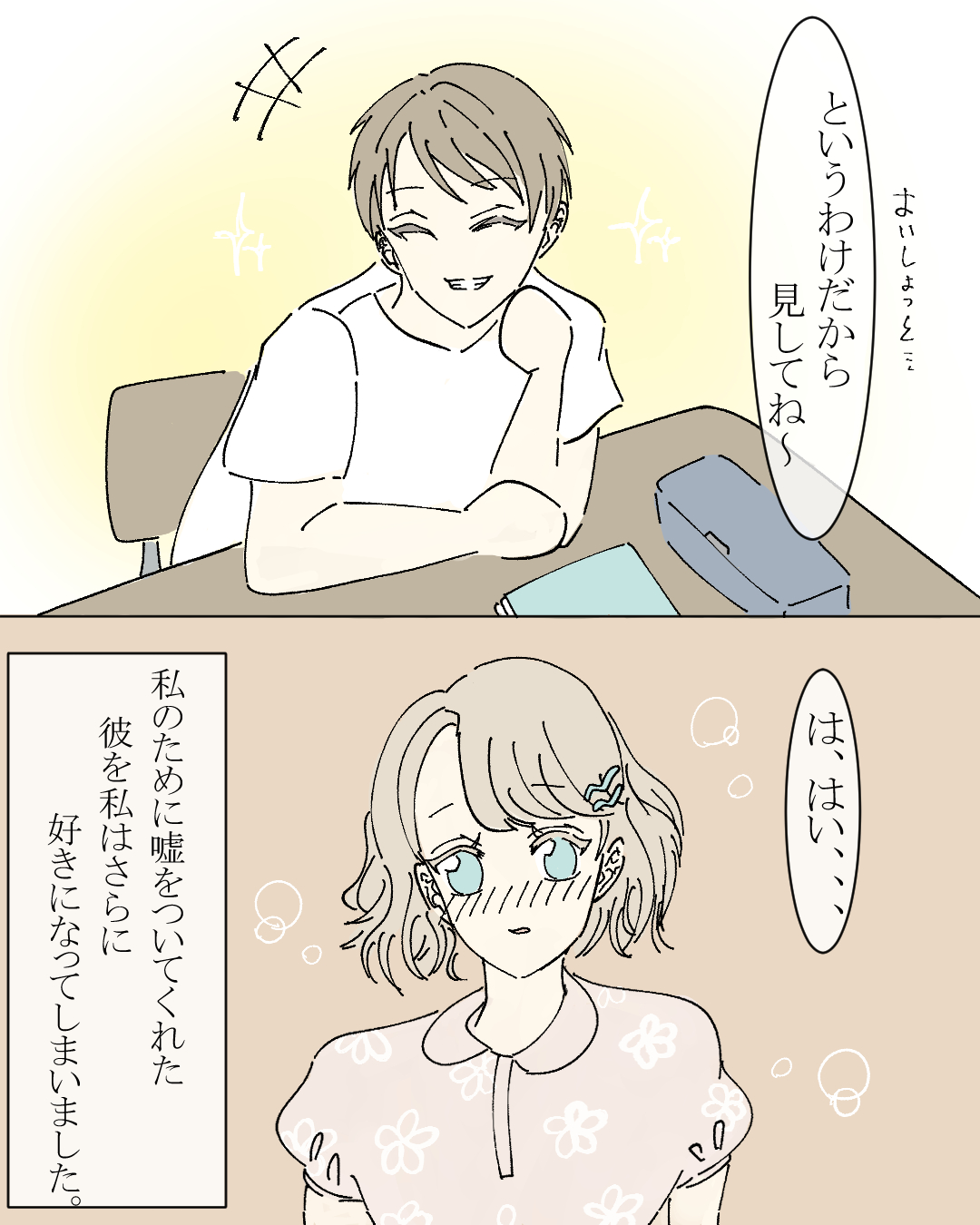 小学生の時の隣の彼【Lovely漫画】 オリジナル漫画 2023年12月12日 目次甘酸っぱい…まだあります♡ 両片思い(?) | Lovely[ラブリー] 高校時代に好きだったYくん。お互い意識しつつも何もなく卒業しました。しかし卒業後、Yくんが共通の友達と遊びに来てくれて…。©ぴまを/エピソード:アイスクリーム 忘れられない恋 | Lovely[ラブリー] 中学・高校と一緒だった彼に6年間片思いしていた私。告白できないまま卒業の日がやってきて…。©beth/エピソード:すーちゃん 甘酸っぱい!少女漫画を実写化したおもしろい映画ランキング51選! | Lovely[ラブリー] 少女漫画は近年実写映画の原作としても多く注目されています。有名作から最新作まで様々ですが、その中でも特に人気の高い作品は?今回は、少女漫画の実写映画化作品の中でも特に面白い作品についてご紹介していきます。最新作にも注目です! PR「マンガPark-話題作多数!人気漫画が毎日更新で読める」をApp Storeで 「マンガPark-話題作多数!人気漫画が毎日更新で読める」のレビューをチェック、カスタマー評価を比較、スクリーンショットと詳細情報を確認することができます。「マンガPark-話題作多数!人気漫画が毎日更新で読める」をダウンロードしてiPhone、iPad、iPod touchでお楽しみください。 ライター Lovely編集部 編集部レポや最新情報など皆さんの「知りたい」をお届け!よろしくお願いします♡ Related article / 関連記事 オリジナル漫画 メンヘラ彼氏にサヨナラ【Lovely漫画】 ©みんみ 2022年3月29日 オリジナル漫画 年下イケメン彼氏に翻弄されるオンナの毎日#3【Lovely漫画】 ©みんみ 2022年3月29日 オリジナル漫画 2人暮らしのゆる家事日記~気まぐれ旦那の献立作りの巻き~後編【Lovely漫画】 ©みんみ 2022年3月29日 オリジナル漫画 年下イケメン彼氏に翻弄されるオンナの毎日#1【Lovely漫画】 ©みんみ「初めての○○の話 前編」 2022年3月29日 オリジナル漫画 年下イケメン彼氏に翻弄されるオンナの毎日#2【Lovely漫画】 ©みんみ「初めての○○の話 後編」 2022年3月29日 オリジナル漫画 よかったらシェアしてね! URLをコピーしました! URLをコピーしました! 超名作の少女漫画を読みたい!歴代人気の少女漫画50選【最新2023】 【悠】の意味・由来を知って名前に取り入れよう|子供の名づけをお助け!