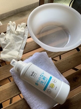 ファーファFree&液体洗剤・清潔なタオル・大きめの桶・炊事用手袋