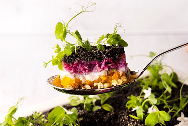 大地をイメージした味わいの異なる5層仕立て。 身体にも地球にも優しい、「Blue Globe Tokyo」のシグネチャーメニューです。