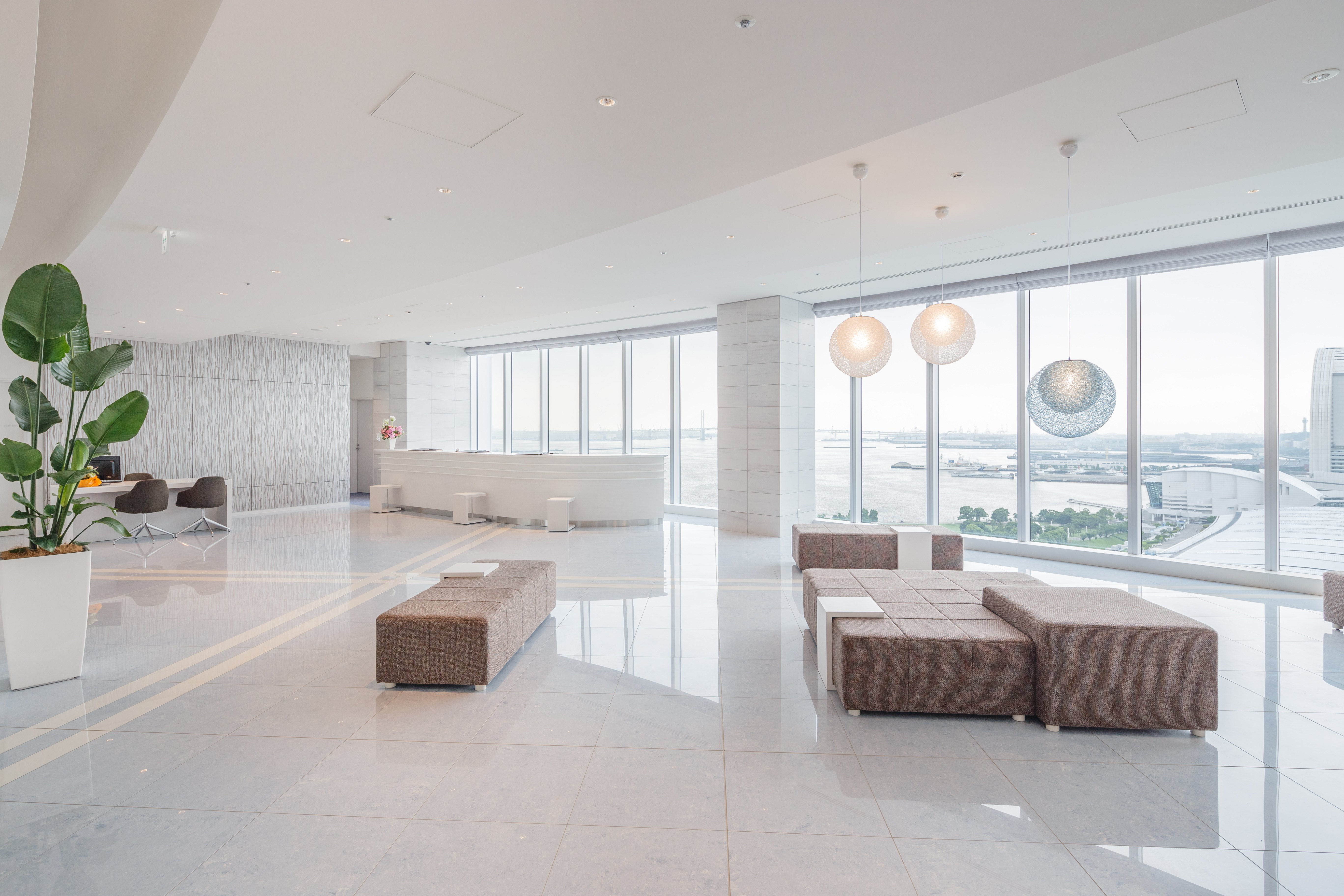 「ベイクラブフロア」の宿泊で最上階のラウンジを利用することができるため、大パノラマビューを見ながら仕事ができます。