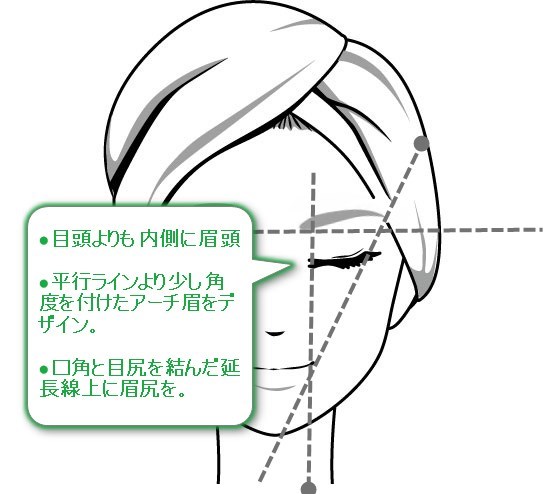 「顔が横に広く見えるんだから、眉は短くていいんだよね」と思ったアナタ。それでは顔がデカく見えるだけです。眉が短いとフェイスラインの両サイドの余白が広く出てしまうんです。