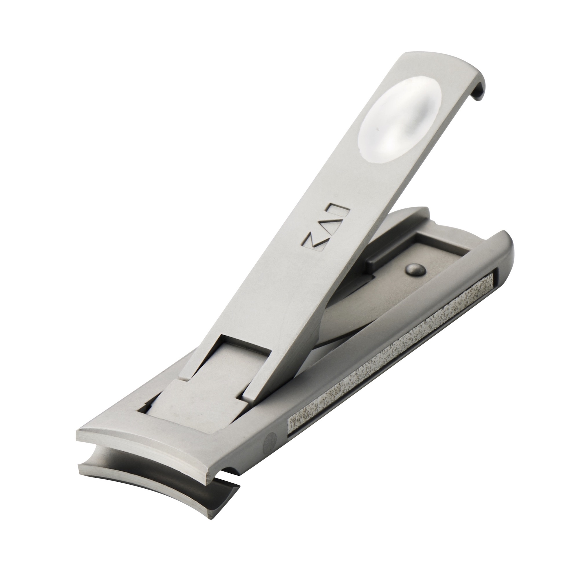 細かく精密な金属加工が可能な「MIM」工法を使った曲線とふくらみが印象的な超薄型のツメキリです。胴体のサイドにはツメヤスリを内蔵。