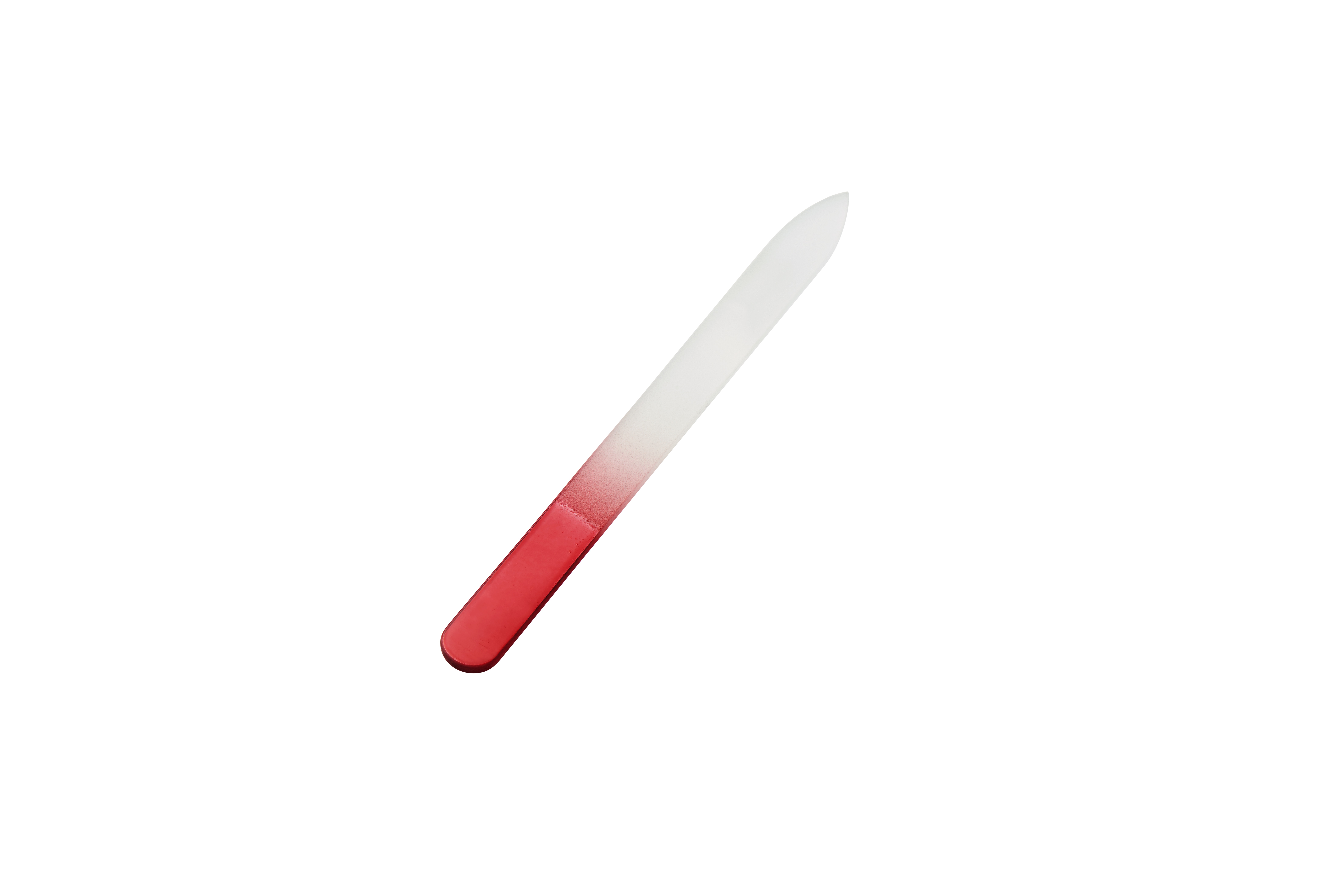 なめらかな削り心地のガラス製ツメヤスリ。ツメキリを使用後、仕上げとして角を落とすようにツメの輪郭に沿って粗い面から細かい面にヤスリがけをして整えると、きれいに仕上がります。水洗いもできるため、清潔に保ちながら使用できます。