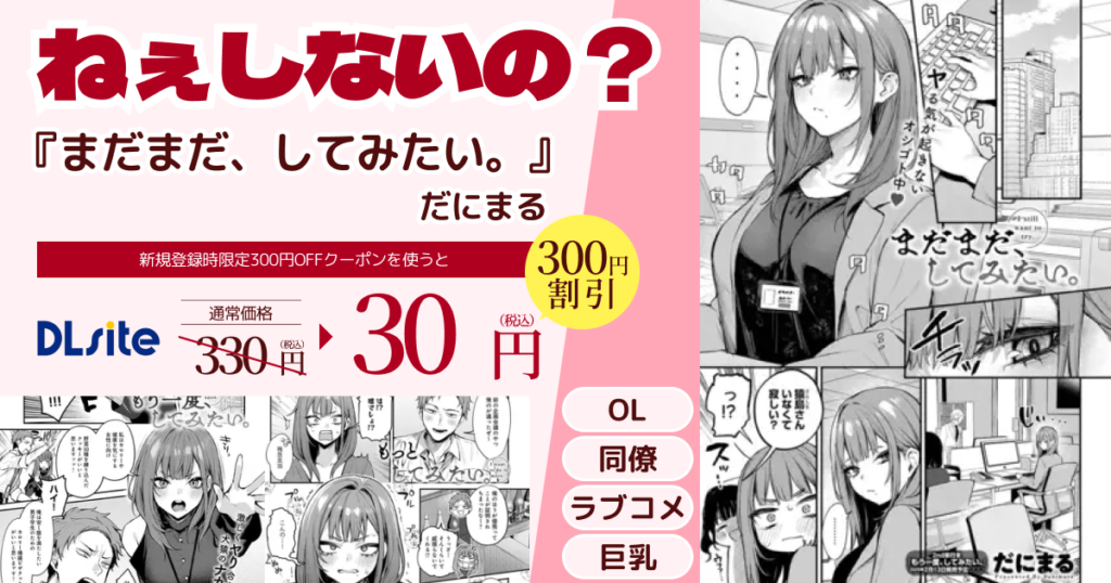 DLsiteの新規登録クーポンを利用すると、300円OFFの30円で購入できます。