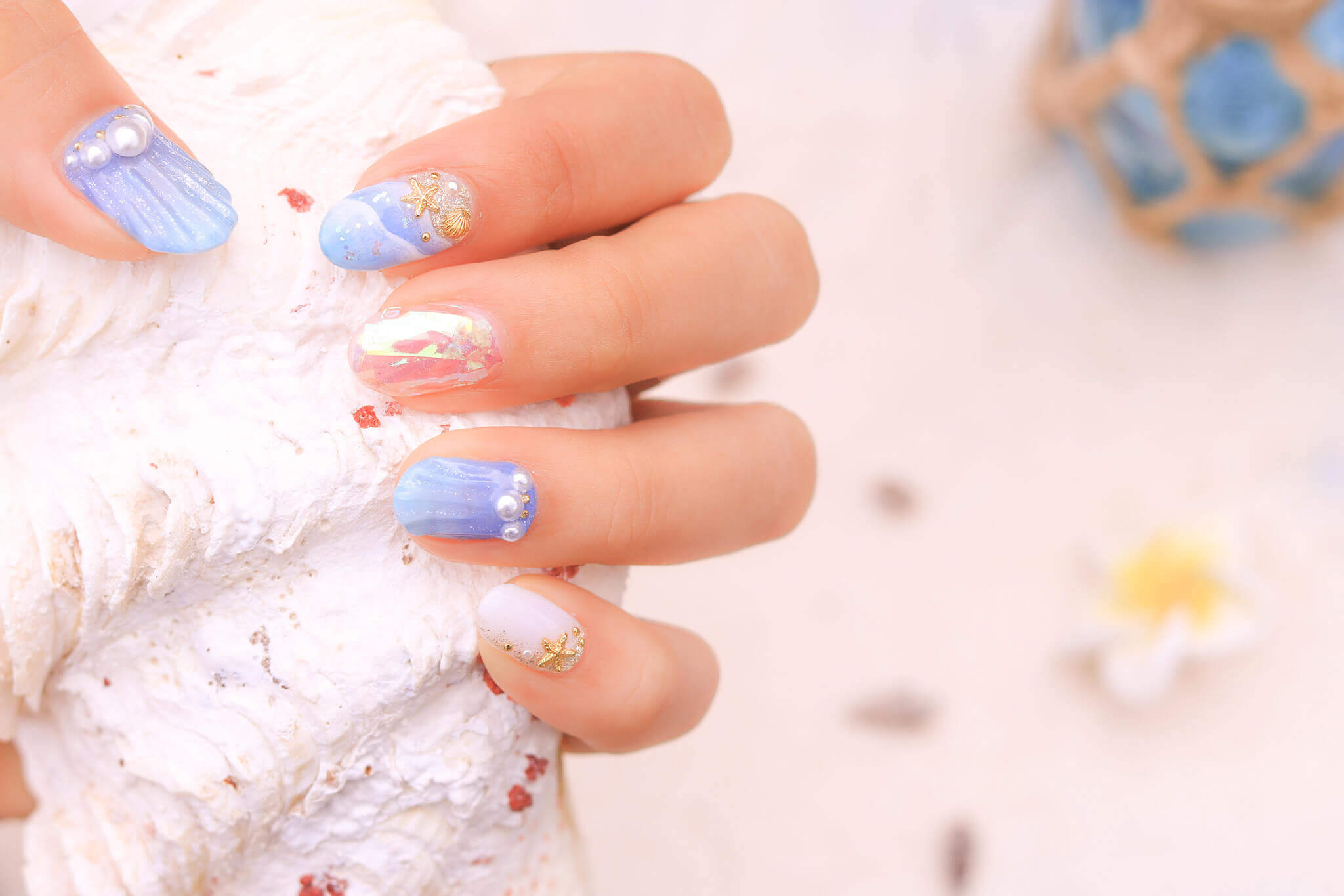 これからの夏、透明感のある天然石ネイルは指先が涼しげで見た目も爽やか。天然石ネイルは基本形を覚えておくとたくさんのアレンジができますからぜひセルフでもチャレンジしてみてください。