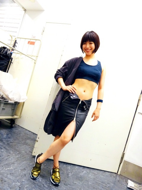 腹筋美女として紹介されるだけあってお腹はペタンコ、きれいな腹筋の線が入っています。ダンスで鍛えられた体は大きな筋肉ではなくしなやかな筋肉なのでフェミニンできれいです。