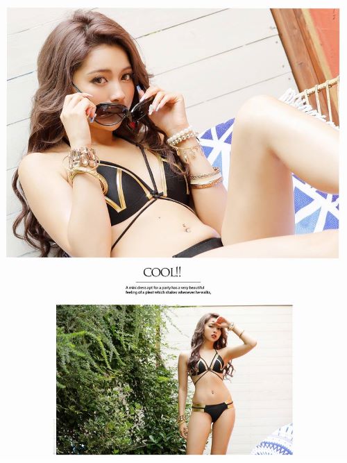 黒の水着というだけでもドキッとしますが、こちらの水着はサイドが大きくオープンになって肌が大きく露出しているもの。なかなかこの水着をここまで着こなせる女性はいないでしょう!