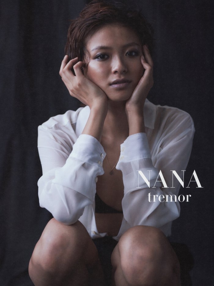 白のキャミソールが健康的な榮倉奈々さんの肌の色にすごく映えます。いたずらっ子のようにちょっと舌を出して生クリームを指に出している榮倉奈々さんがかわいい!