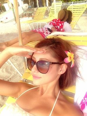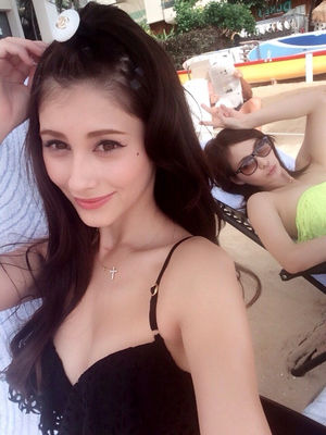 まとめ髪もキレイなダレノガレ明美さん。清楚な水着で大きなバストの存在感がすごいです。
