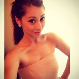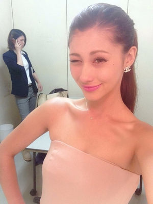 両手にあまりそうなほど大きな美バストの画像。ちょっと伏せた目元も色っぽいです!