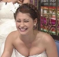 テレビ番組内でウェディングドレス姿を披露した時の画像。巨乳ですね!