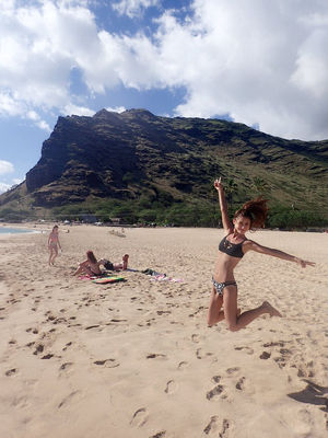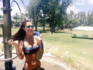 外国のモデルさんのような過激な水着写真もこの笑顔でキュートな印象に♪