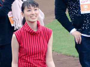 夏らしく涼し気で軽やかな素材の服を着た栗山千明さん。大きなぬいぐるみを抱え上げているその胸元に目がいってしまいます♡