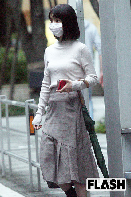 弘中綾香さんは、上半身にボリュームのない衣装を好むようで、上半身の体の線はよくわかるものばかり。この画像のようなワンピースは好みのようですね。でも、胸の感じがわかりにくい!