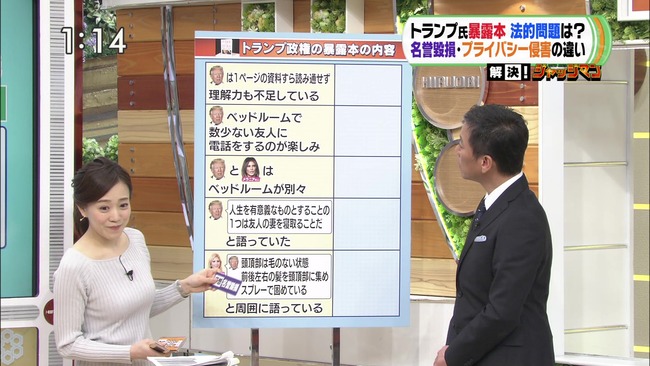 ニュースを解説している江藤愛アナ。グレーのセーターは胸元が盛り上がっていて素晴らしい巨乳がクッキリ♡