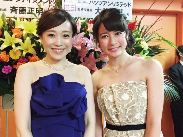 ブルーのドレス姿はすごく大人っぽくて素敵ですね!江藤愛アナは色白で美肌ですね♪無防備な胸元にも思わず視線を向けてしまいます。