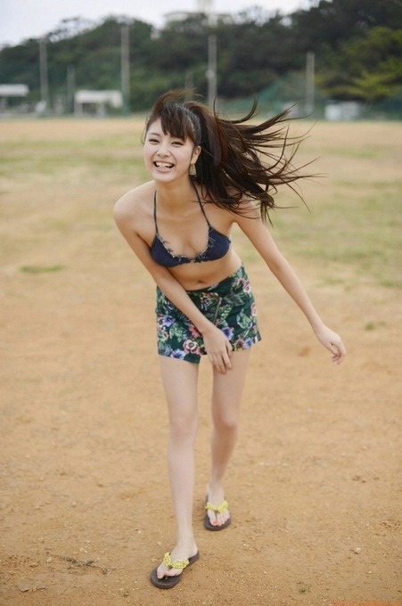 少し片足を前に出したグラビアポーズ♡色っぽさと子供のような無邪気さのバランスが最高ですね!