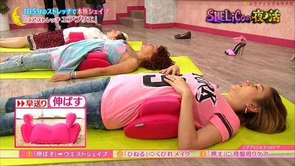こちらはかつて放送されていたディノスとのコラボ通販番組「SHELicoの夜活」内で新商品を実際に試しているショットです。