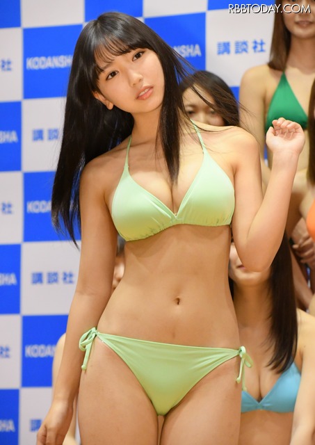 鮮やかなカラフル水着の3連ショット。夏のフルーツのようにみずみずしい若さ溢れる沢口愛華さんの姿が可愛いですね。
