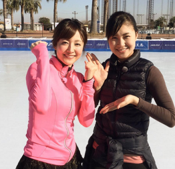 こちらは番組の企画でフィギュアスケートに挑戦した時の滝菜月アナの画像です。右側は村上佳菜子さんで左側が滝菜月アナですね。