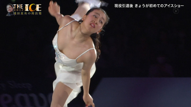 氷の上に舞い降りた妖精のような雰囲気の浅田真央さん。横から見ても上から見ても、ぺたんこだった胸の膨らみが大きくなっているのが分かります。