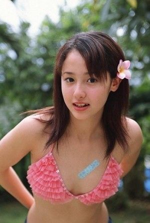 ピンクの水着は可愛い沢尻エリカさんをさらに女性らしく可憐に見せています。Dカップの胸はふとした仕草で谷間がチラ見えしています♡お花をヘア飾りにしているところがまるで少女のようです♪