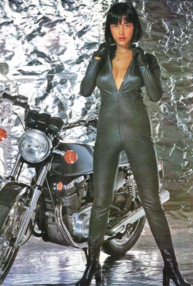 こちらのかたせ梨乃さんもかっこいいですね。体のラインがはっきりと分かります。もうこれ以上ファスナーが上がらないのではないかと考えてしまうほど、バストのボリュームに目が惹かれます。
