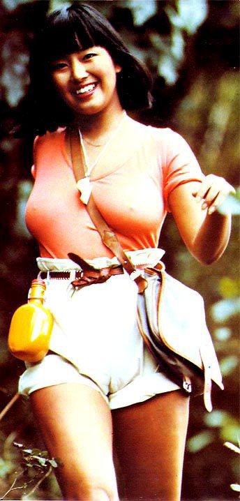 こちらはハイキングを楽しむ、かたせ梨乃さんでしょうか。ピタッとしたトップスに、短いパンツ。ベルトでウエストを縛り、そして何より肩からぶら下げたショルダーバックが、大きなバストをしっかりと強調しています!