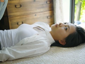 仰向けに寝た状態でもハリを失わず上向きに保たれたままの見事な胸をご覧ください♡大きな胸は垂れやすいのが悩みだと言われますが、谷村美月さんの胸はまだまだピチピチとした若さで張りつめています。