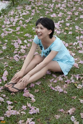 ベリーショートのヘアスタイルがクールで格好いいワンショット!下に水着か下着が透けて見えているのも注目ですね!