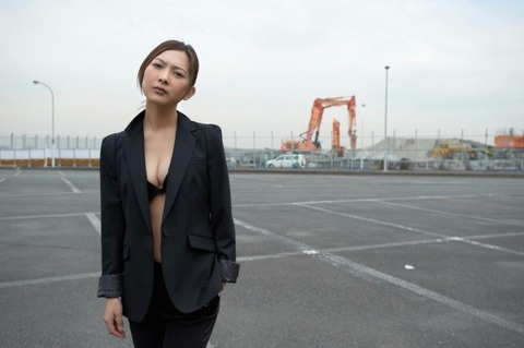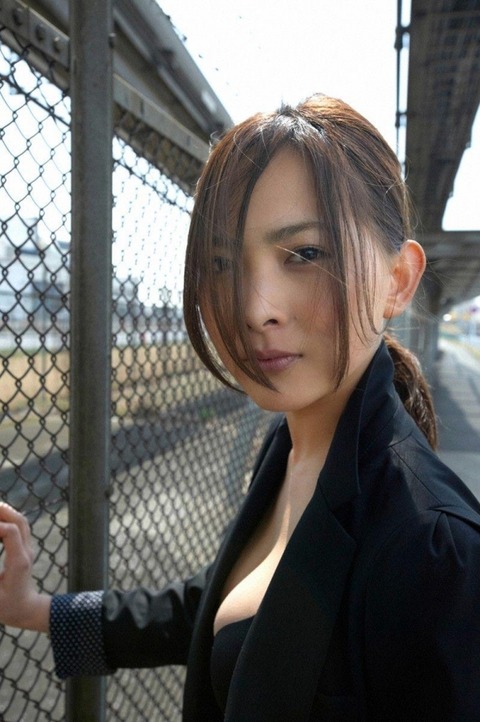 こちらはまたグッとシックで大人の色気満載の谷村美月さん!黒い下着の上に黒いジャケットを羽織ってクールな雰囲気に!
