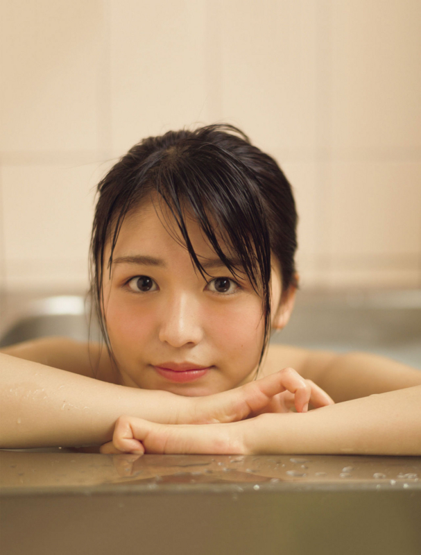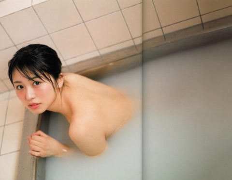 乳白色の入浴剤でかろうじて肌を隠していますが、こちらもセミヌードの長濱ねるさんです。