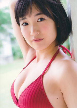 ちょっとお澄ましのグラビアポーズ姿が可愛らしいショットです。シックな赤い水着は女性らしさが増してみえます。
