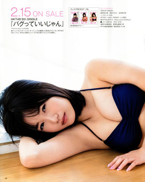 水着にも関わらず足を組んで大胆なポーズ♪巨乳を腕で挟み込んでいるのは無意識でしょうか?笑顔も最高の素敵な画像です。