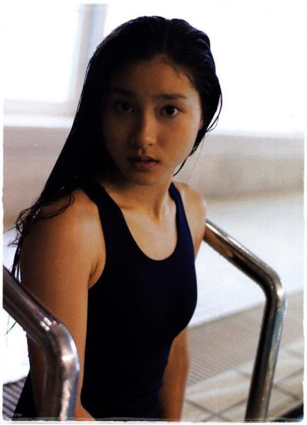 濡れた髪がピチピチした肌にかかってセクシーな雰囲気です。この頃の胸のカップはBカップぐらいでしょうか?10代後半から20代前半にかけて胸は大きく成長したようですね♡