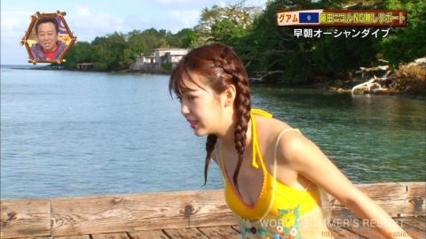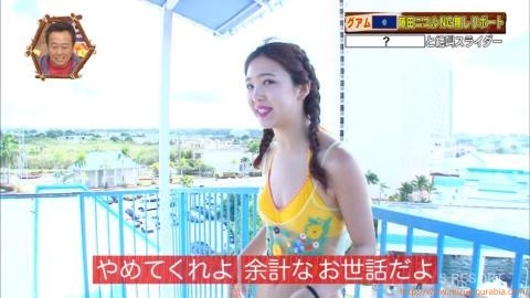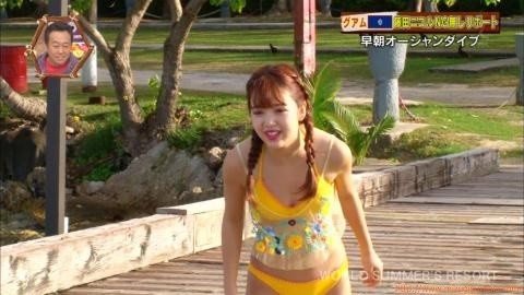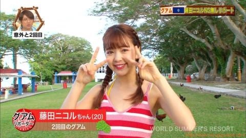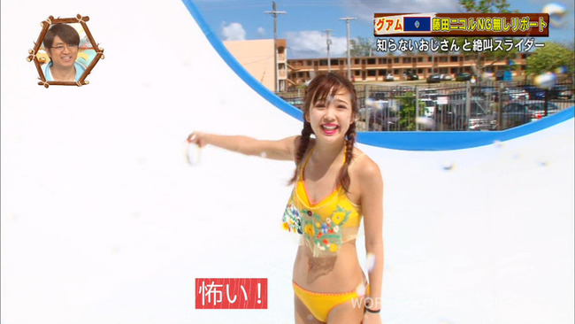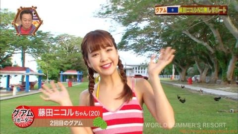 グアムロケで見せた黄色の水着姿もすごく可愛いと話題になりました。キュートな愛されキャラの藤田ニコルさんの姿に、VTRを見ているスタジオのタレントもみんな笑顔になっています。