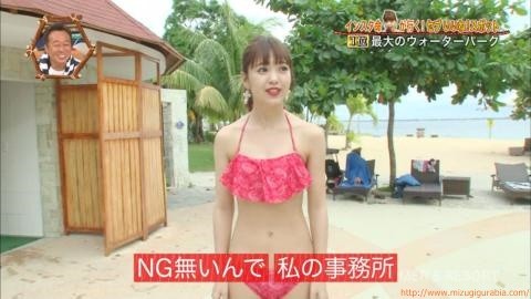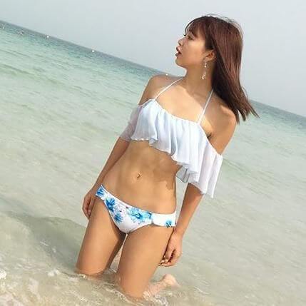 白のフリルのトップス付きの水着は最近流行のデザインですね。清楚に見えますが股上が浅いビキニパンツの方はかなりきわどくて色気たっぷり!天使のように可愛いに藤田ニコルさんに胸キュンです。