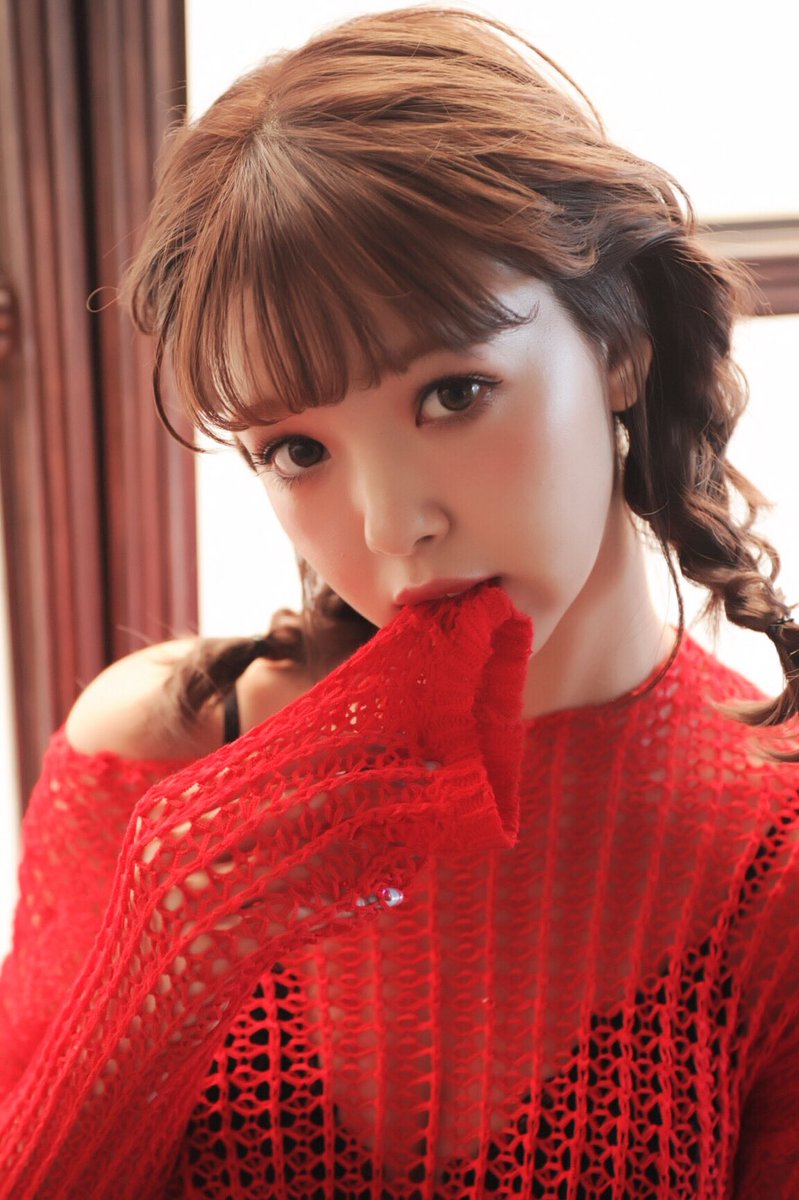 ベッドの上で撮られた赤の下着姿も無防備な色気を振りまいていますね!柔らかそうな胸の膨らみに思わず手を添えたくなってしまいます♡