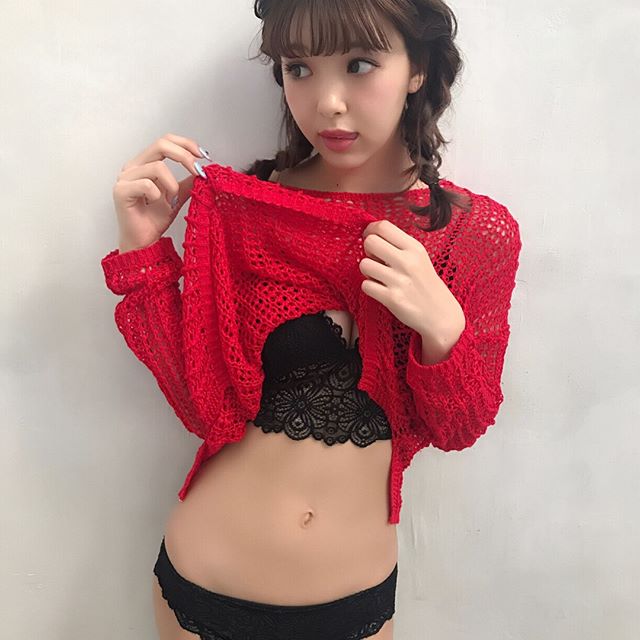 こちらは黒の下着に赤のニットのトップスを合わせた超色っぽい藤田ニコルさんの悩殺ショット!可愛さの中にセクシーさもあってドキドキしてしまいますね!