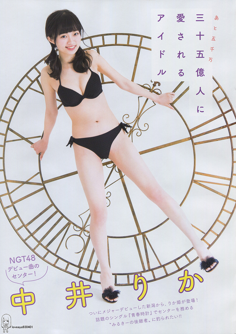 水色のビキニ姿の中井りかさんもキュートでピュアな雰囲気。炎上王という名を持つ彼女だからこその小悪魔的な笑顔は、多くのファンを魅了されています。