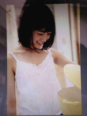 今にも胸が露出してしまいそうな頼りないキャミソール姿は、守ってあげたくなるほどのあどけない雰囲気です。