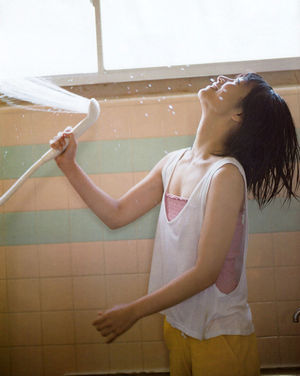 服を着たまま水に飛び込んでいる無邪気なショット♡濡れて体にはりついたシャツがエロティックです♡