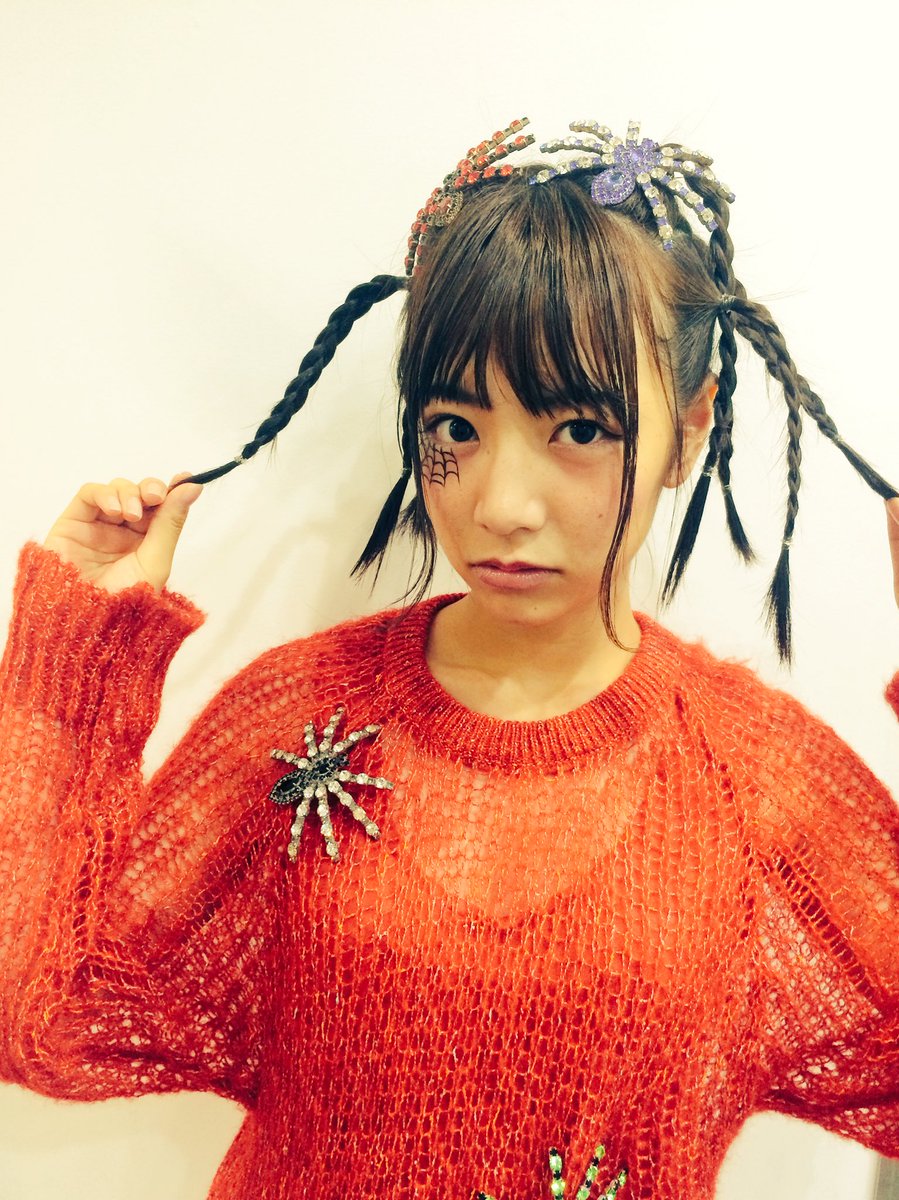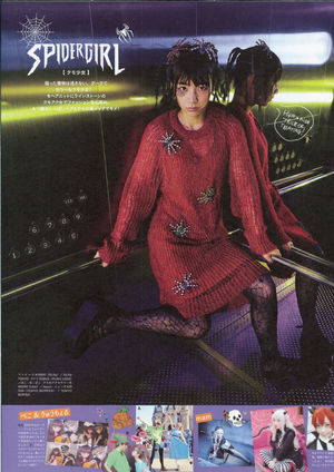 ハロウィンのコスプレ姿ですが、よく見るとニットの下に黒い下着のようなものが透けて見えています。網タイツの美脚もセクシーです。
