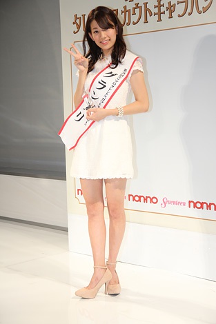 背が高い佐藤美希さんは足の長さも魅力の1つ。細くてスラリと伸びた美脚はミニスカートがよく似合います。
