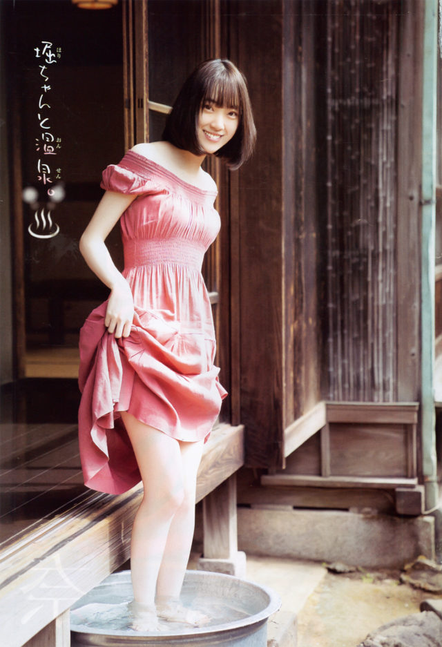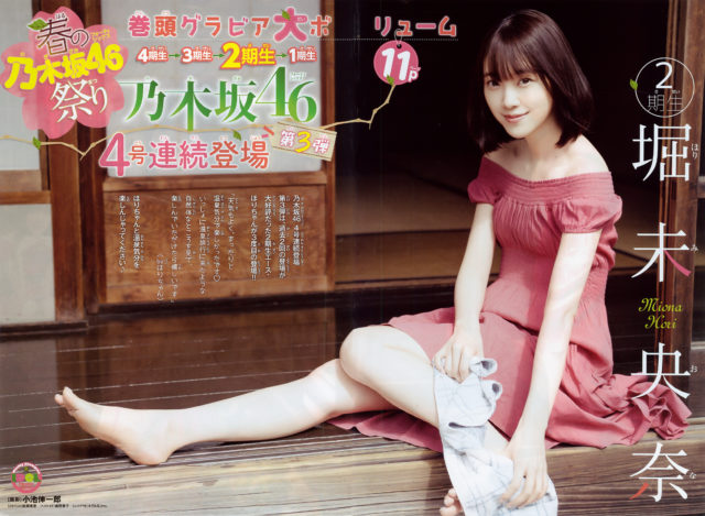 胸元が見えそうなことに気付いていない無防備な堀未央奈さん。あどけない表情がまた良い感じです。