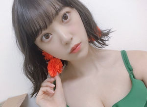大きくはありませんがBカップの小ぶりな胸が色っぽいですね。ピンクの花を付けてアイドルらしくラブリーな雰囲気に♡