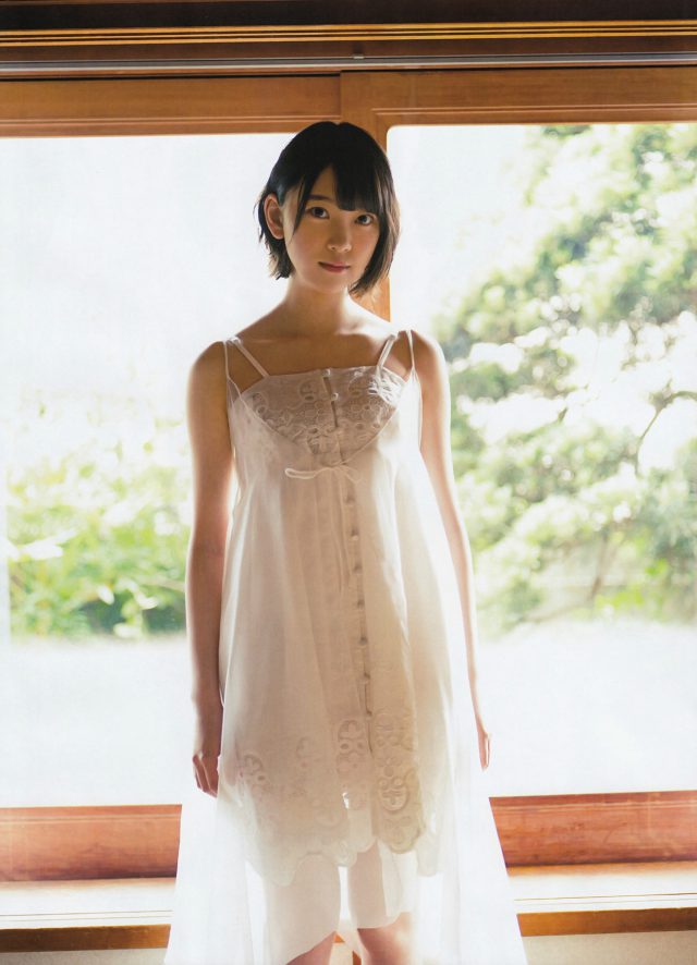 この頃はまだまだ胸が発育途中なのか、そこまで胸が目立っていませんね。真っ白なキャミソールワンピースでまるで妖精みたいに透明感があります。